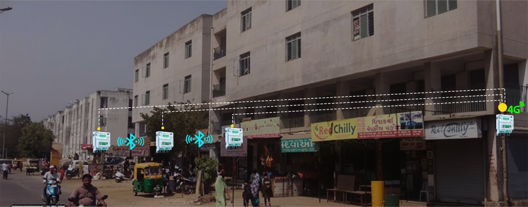 Every Meter is a Gateway (Rs 8 sim will cost you Rs. 2):- A group of meters share a single 4G connection, eliminating the need for a SIM card in every meter and saving up to 75% in SIM costs. Even if a meter is standalone today, any new meter installed nearby in the future will operate without a SIM. This selection happens automatically in the network and can be rolled back any time